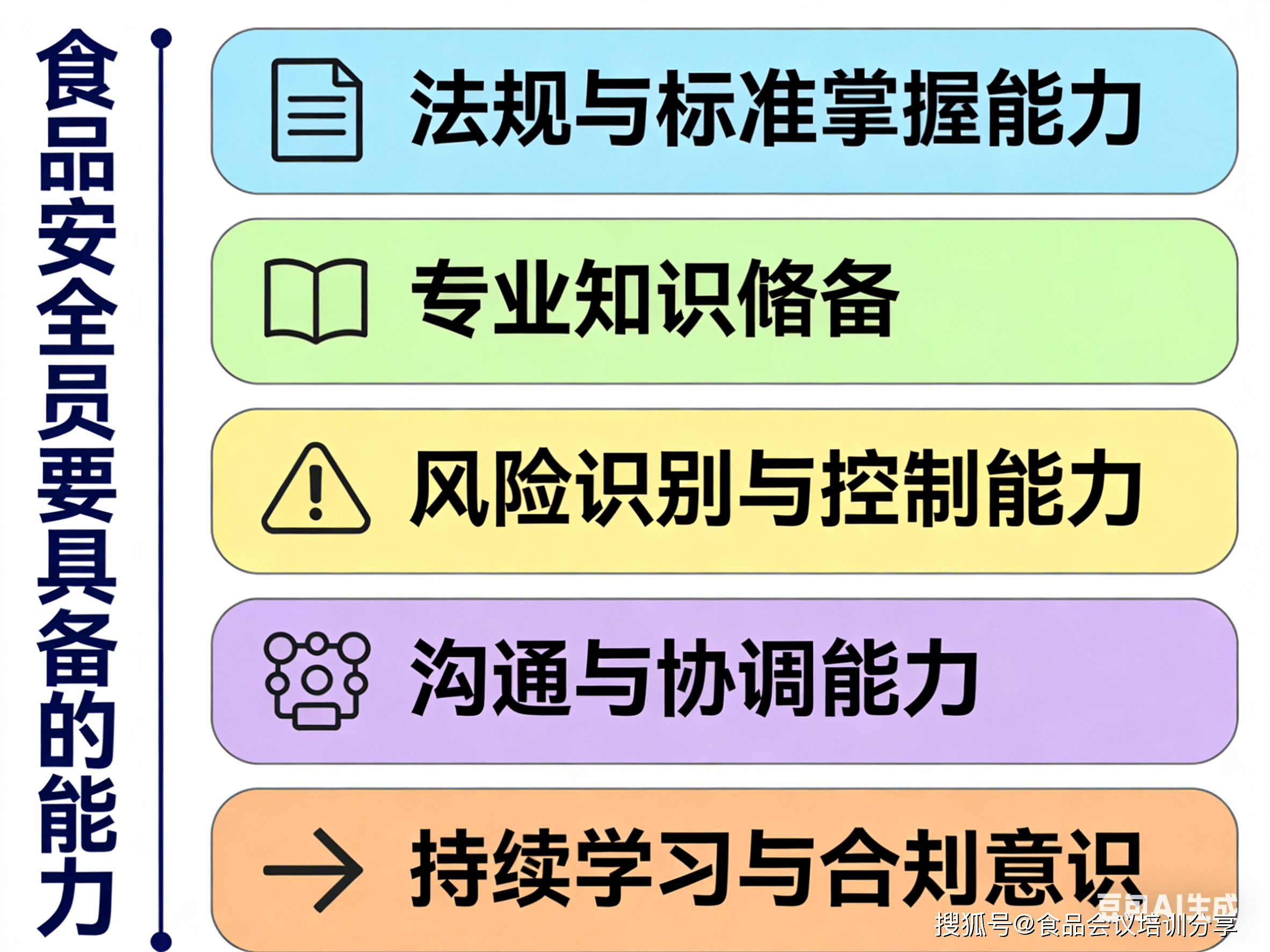 全面控制《中华人平易近国食物平安法》《食物平安法实施条例》《食物出产运营监视查抄办理法子》等焦点律例,明白企业的义务(如 “全过程节制”“从体义务”)及违法后果(罚款、吊销许可、刑事义务等)。熟练使用食物平安国度尺度(GB 系列),包罗原料平安尺度(如 GB 2762 污染物限量、GB 2763 农药残留)、出产卫生尺度(如 GB 14881 食物出产通用卫生规范)、查验方式尺度(如 GB 4789 微生物查验)等,确保出产全流程合适尺度要求。控制食物微生物学(如致病菌污染风险、菌落总数节制)、食物化学(如沉金属、添加剂、兽药残留等化学风险)、食物工艺学(如热加工、冷藏、包拆等环节的平安节制点)等焦点学问,能识别分歧食物品类(如生鲜、烘焙)的特有风险。熟悉 HACCP(风险阐发取环节节制点)、ISO 22000 食物平安办理系统、SSOP(卫生尺度操做法式)等系统的焦点逻辑,能理解 “风险防止”“过程节制” 而非 “结尾查验” 的办理。能通过原料验收、出产过程放哨、成品查验等环节,识别生物风险(如沙门氏菌、霉菌)、化学风险(如不法添加剂、农残超标)、物理风险(如金属异物、玻璃碎片)及工艺风险(如杀菌不完全、冷链断链)。能针对识此外风险采纳立即办法(如暂停出产、隔离问题原料),并鞭策落实改正防止办法(如优化清洗流程、升级检测频次)。能取出产、采购、研发、发卖等部分无效对接(如向采购部分明白原料验收尺度,向出产部分强调环节节制点操做规范),确保食物平安要求贯穿全链条。能共同监管部分的查抄(供给记实、注释流程),取供应商沟通质量要求,或向消费者解答根本食物平安问题。关心律例取尺度更新(如国度卫健委发布的新国标、自动加入行业培训(如 HACCP 内审员、食物平安办理员证书培训),确保办理方式取行业要求同步。具备 “零” 的合规认识,明白食物安满是企业底线,杜绝 “侥幸心理” 或 “成本优先” 的违规操做。感乐趣的记得留言哦。食物会议培训核心,分享食物行业会议培训动态,充实满脚您的进修需求。前往搜狐,查看更多。